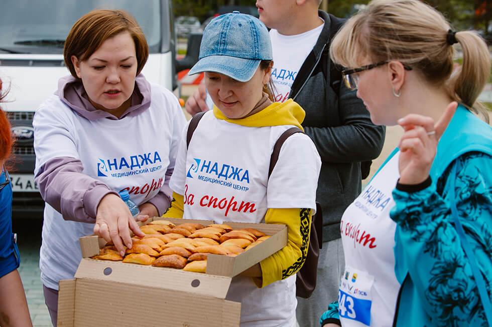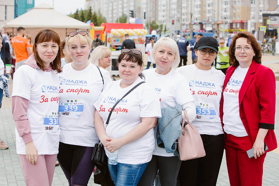 45 сотрудников «НАДЖА» приняли вызов главного массового спортивного старта 2021 года, преодолели дистанцию 5 км и были отмечены памятными медалями и футболками. Остальные активно поддерживали коллег в качестве болельщиков фан-зоны. Мы гордимся такой командой.